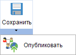 Расширением кнопки Сохранить является кнопка Опубликовать. После нажатия на эту кнопку выполняется проверка текущей модели, после чего осуществляется ее публикация, если в ходе проверки не было обнаружено ошибок. В противном случае публикации не произойдет, а будет открыто окно Ошибки и предупреждения, содержащее информацию о предупреждениях и обнаруженных ошибках.