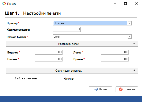 Рис. 2. Процесс подготовки к печати листа моделирования оргструктуры. Шаг 1
