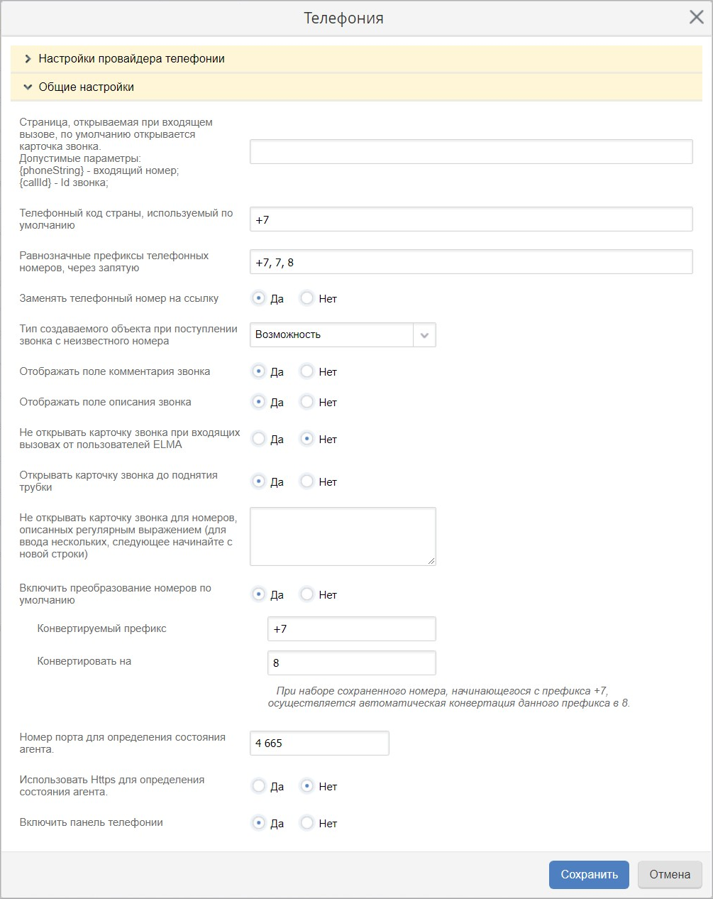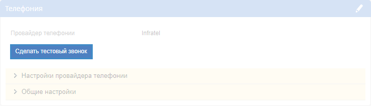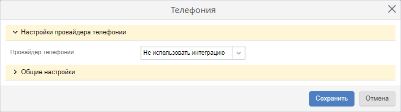 В данном блоке располагаются две сворачиваемые панели: Настройки провайдера телефонии и Общие настройки.