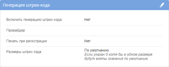 Включить генерацию штрих-кода – параметр, который определяет возможность генерации штрих-кода при регистрации документа. Сгенерированный штрих-код записывается в атрибут документа Штрих-код и отображается в карточке документа на вкладке Общая информация в разделе Атрибуты документа.