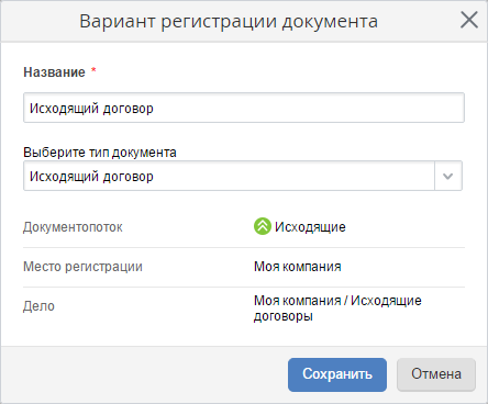 Выберите тип документа – из выпадающего списка необходимо выбрать тип документа, для которого создается вариант регистрации.
