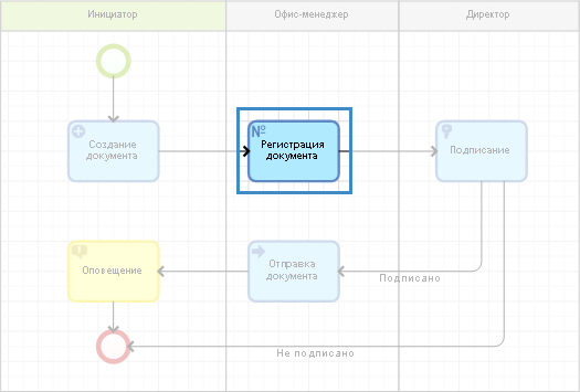 Рис. 1. Операция "Регистрация документа" на графической модели процесса