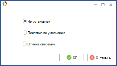 Операция Регистрация документа может иметь несколько исходящих переходов со статусами Не установлен, Действие по умолчанию, Отмена операции.