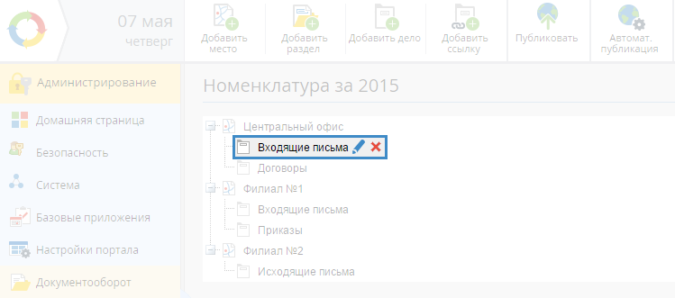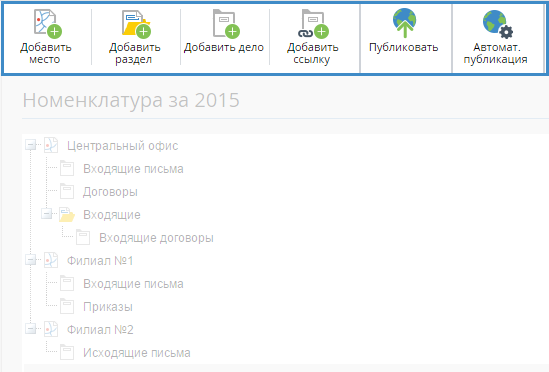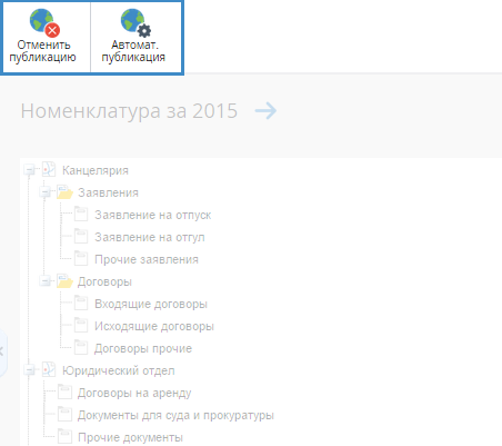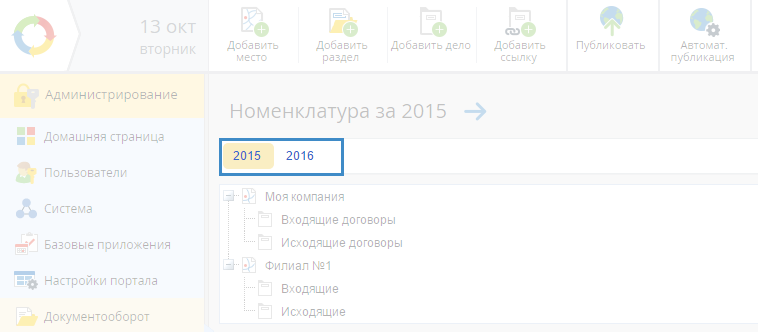 В случае, если номенклатура организации создается на один календарный год, будут отображены вкладки, соответствующие годам (рис. 2). На каждой вкладке будет отображена номенклатура за соответствующий год. Активная вкладка подсвечивается желтым цветом.