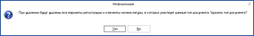 Подтвердите удаление типа документа нажатием кнопкой Yes или отмените удаление типа документа нажатием кнопки No (рис.8).