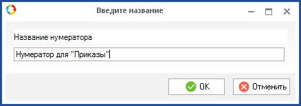 В открывшемся диалоговом окне необходимо ввести название нумератора и нажать на кнопку ОК (рис. 3).
