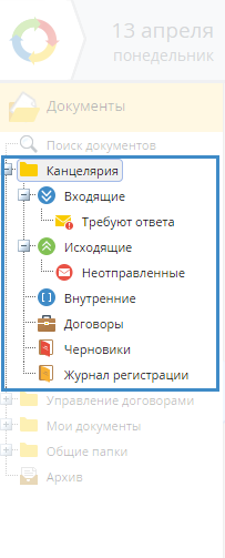Раздел Канцелярия состоит из следующих папок-фильтров: