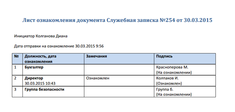 Пример экспортированного листа ознакомления представлен на рисунке 10.