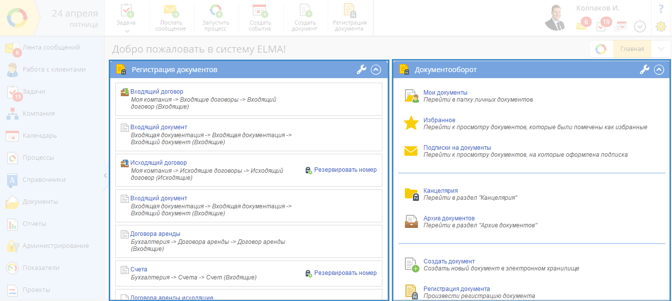В системе ELMA предусмотрено два портлета для работы с приложением ECM+: