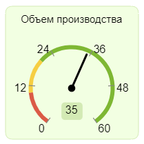 Данный элемент отображает значение одного выбранного показателя в текущем периоде. Цвет элемента при отображении в веб-приложении соответствует цветам шкалы, установленным для данного показателя (рис. 2). Следует отметить, что использование данного элемента невозможно для персональных показателей и целей.