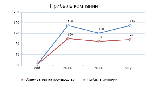 Данный элемент отображает значение одного или нескольких показателей за определенное количество периодов в виде графика. Следует отметить, что использование данного элемента нецелесообразно для персональных показателей.
