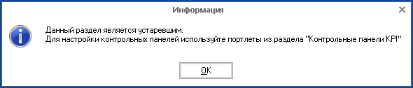 При выполнении указанных выше настроек при переходе к разделу Панели управления на вкладке Показателиотобразится уведомление о том, что данный раздел является устаревшим (рис. 1).