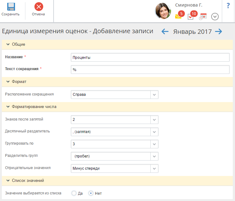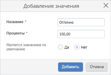 По умолчанию в справочнике содержатся две записи: Проценты и Баллы. При необходимости могут быть добавлены любые единицы измерения, необходимые для работы.