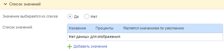 Блок "Список значений"