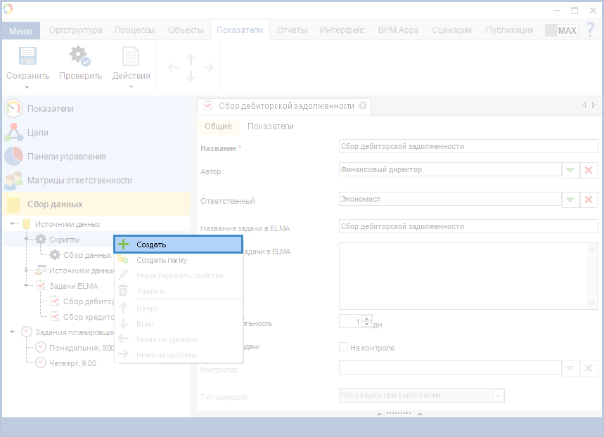 Для того, чтобы создать сценарий, необходимо в контекстном меню раздела Скрипты выбрать пункт Создать (рис. 1).