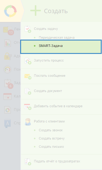 Каждый пользователь системы ELMA может создать SMART-задачу несколькими способами: