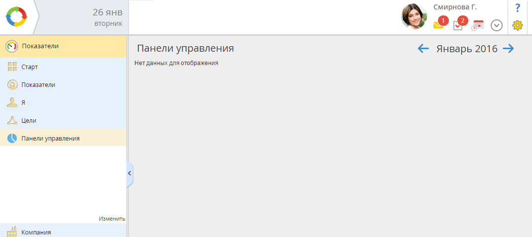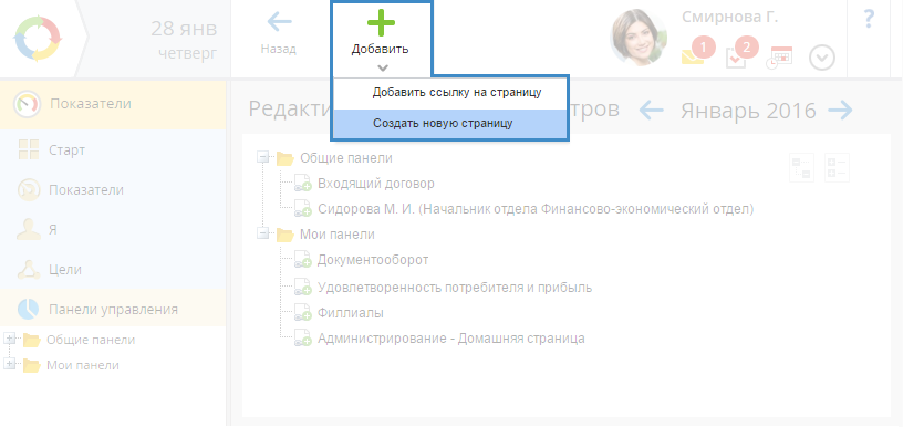 Рис. 1. Страница "Панели управления"