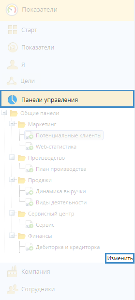Рис. 2. Панели управления. Кнопка "Изменить"