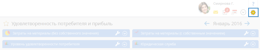 Рис. 7. Портлетная страница "Выручка". Кнопка "Настройки страницы"
