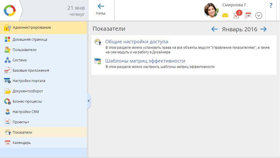 Рис. 3. Раздел "Администрирование – Показатели"