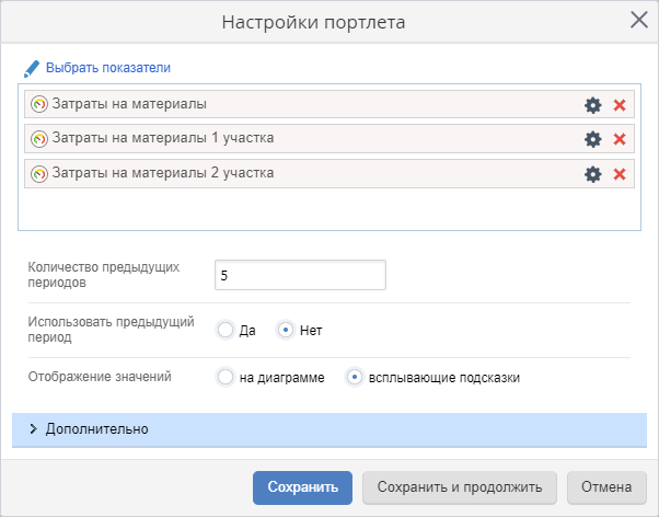 Количество предыдущих периодов – количество предшествующих периодов, за которые требуется отобразить значения выбранных показателей.