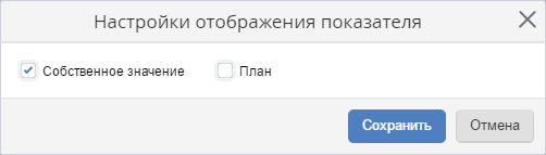 – при нажатии на данную кнопку открывается диалоговое окно Настройки отображения показателя (рис. 5), в котором необходимо выбрать, какое значение показателя будет отображаться на гистограмме – собственное и/или плановое.