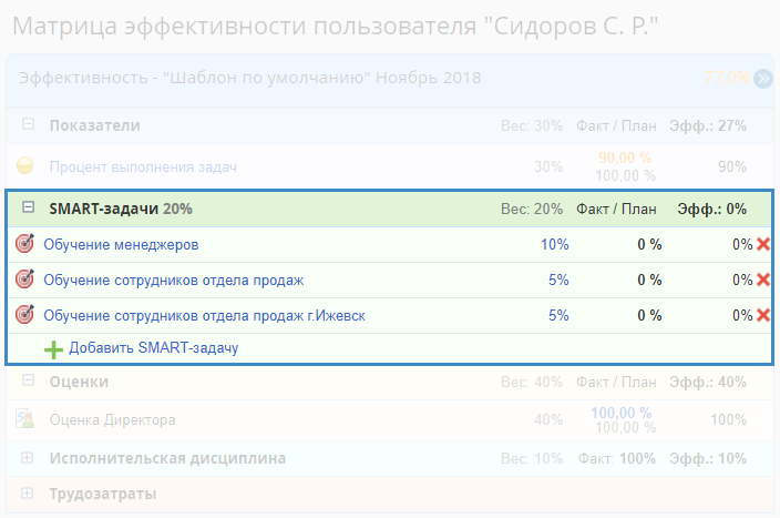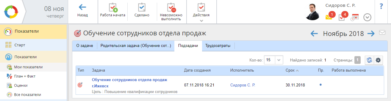 Вкладка Подзадачи (рис. 3) содержит все созданные подзадачи к текущей SMART-задаче.