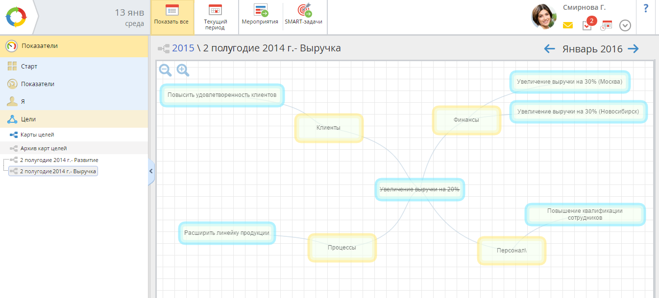 Карты целей, утратившие актуальность, или те, по которым достигнуты все поставленные цели, подлежат архивированию. Все архивные карты отображаются в веб-приложении в разделе Показатели – Цели – Архив карт целей (рис. 1).