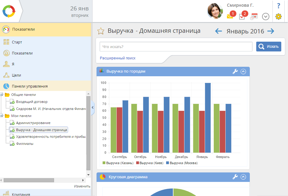 Преимущество таких панелей в том, что они позволяют быстро понять текущую ситуацию по наиболее важным индикаторам компании.