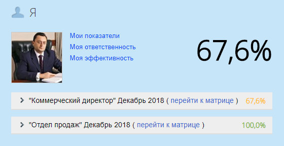 Рис. 1. Портлет "Я, с матрицей эффективности" со свернутыми панелями матриц эффективности