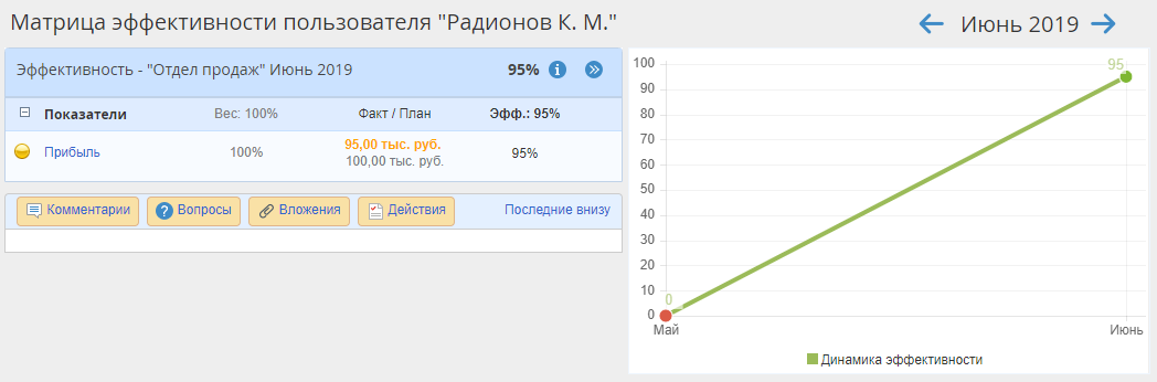 Таким образом, эффективность данного показателя составит 95% (рис. 7).