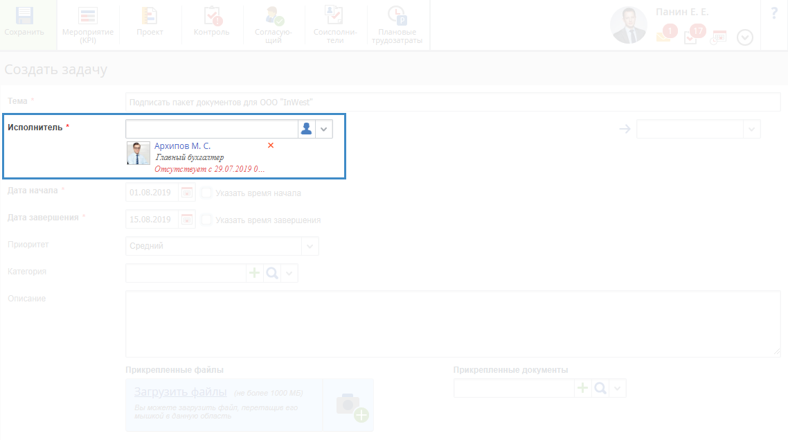 Отсутствующий – поле выбора отсутствующего сотрудника.