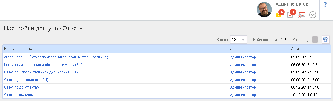 Рис. 1. Страница "Настройки доступа – Отчеты"