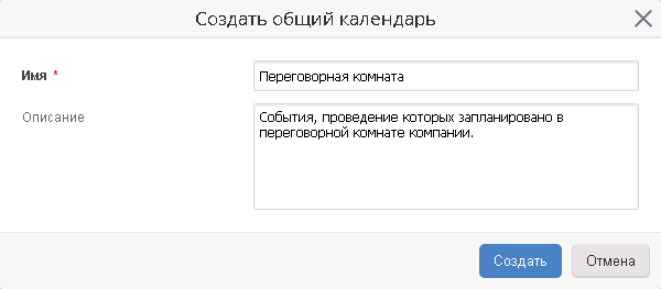 Имя *– наименование создаваемого календаря. Данное поле является обязательным для заполнения.