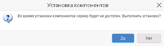 В открывшемся диалоговом окне необходимо нажать на кнопку Да и дождаться окончания процесса установки выбранных компонентов. Во время выполнения данной операции сервер ELMA будет перезапущен.