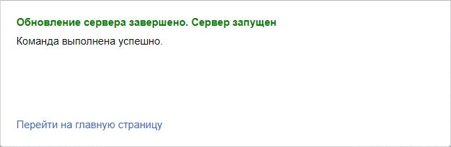 После завершения перезапуска сервера отобразится соответствующее уведомление (рис. 10). Из окна уведомления по активной ссылке можно перейти к