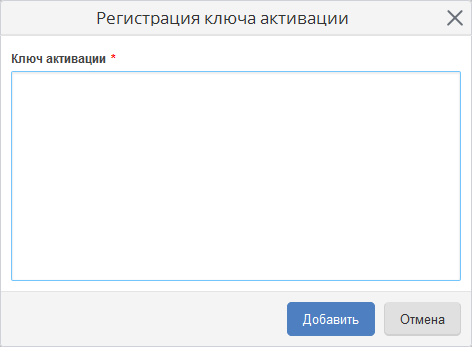 При нажатии на данную кнопку открывается диалоговое окно регистрации ключа активации (рис. 12), в котором необходимо ввести ключ активации и нажать на кнопку Добавить. Выбранный компонент будет активирован.