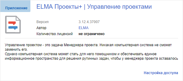 Рис. 4. Блок данных "ELMA Проекты+ | Управление проектами"
