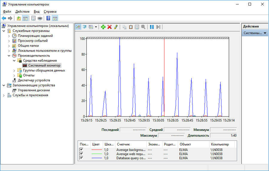 При недостаточной производительности может потребоваться проанализировать ситуацию и отследить использование ресурсов приложениями или системными процессами, чтобы затем увеличить мощность системы в соответствии с возрастающими запросами. Одним из самых мощных инструментов для обнаружения проблем с производительностью в Windows являются встроенные счетчики производительности. Система ELMA автоматически создает три счетчика при активации пункта Использовать счетчики производительности: