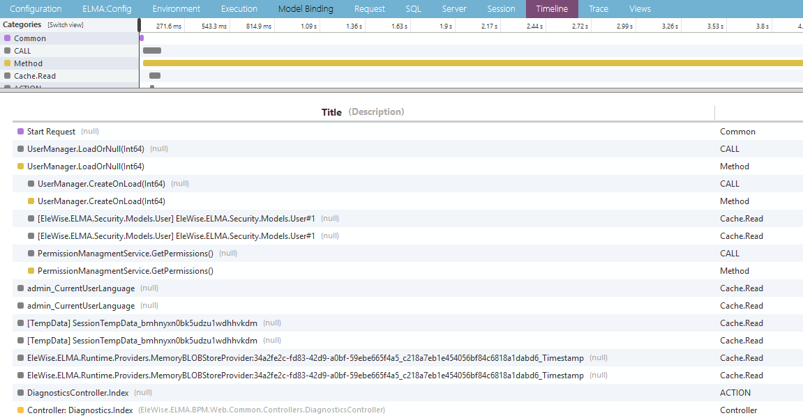 Для просмотра стека вызовов, выполнявшегося при обработке веб-запроса, необходимо перейти на вкладку Timeline (рис. 7).