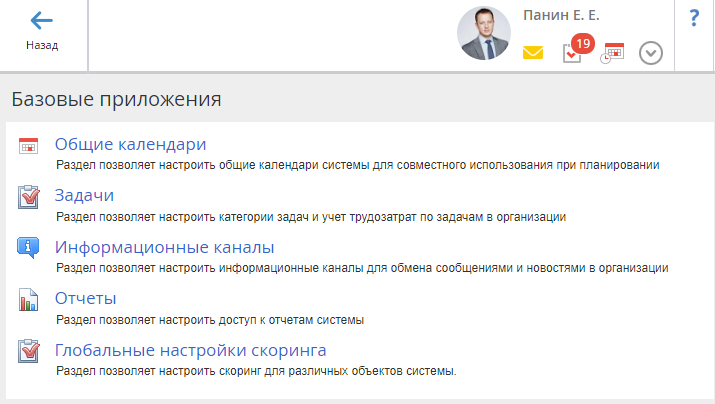 Рис. 1. Раздел "Администрирование – Базовые приложения – Глобальные настройки скоринга"