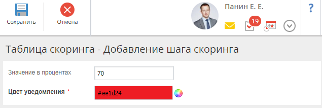 Для редактирования записи таблицы скоринга необходимо нажать на кнопку