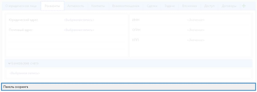 Рис. 13. Дизайнер ELMA. Форма просмотра объекта "Юридическое лицо". Элемент формы "Панель скоринга"