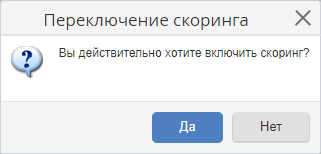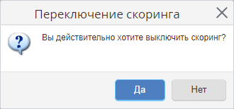 Для подтверждения выключения скоринга дублей необходимо нажать на кнопку Да.
