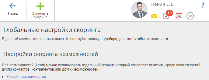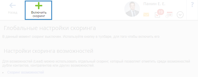 Рис. 6. Страница глобальных настроек скоринга дублей. Кнопка "Включить скоринг"