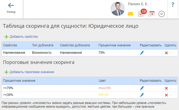 Рис. 8. Настройки таблицы скоринга дублей юридических лиц