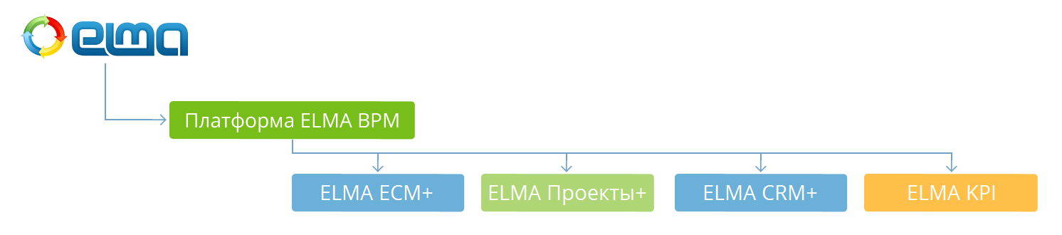 В состав базовой лицензии обязательно входит Платформа ELMA BPM, на основе которой построена вся линейка продуктов ELMA (рис. 1).