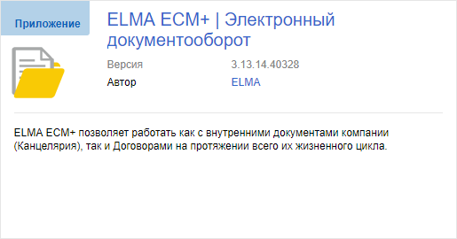 Рис. 2. Блок данных "ELMA ECM+ | Электронный документооборот". Информация о лицензии на компонент
