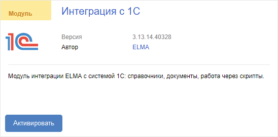 Рис. 3. Блок данных "Интеграция с 1С". Информация о лицензии на компонент