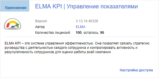 Рис. 5. Блок данных "ELMA KPI | Управление показателями". Информация о пользовательских лицензиях